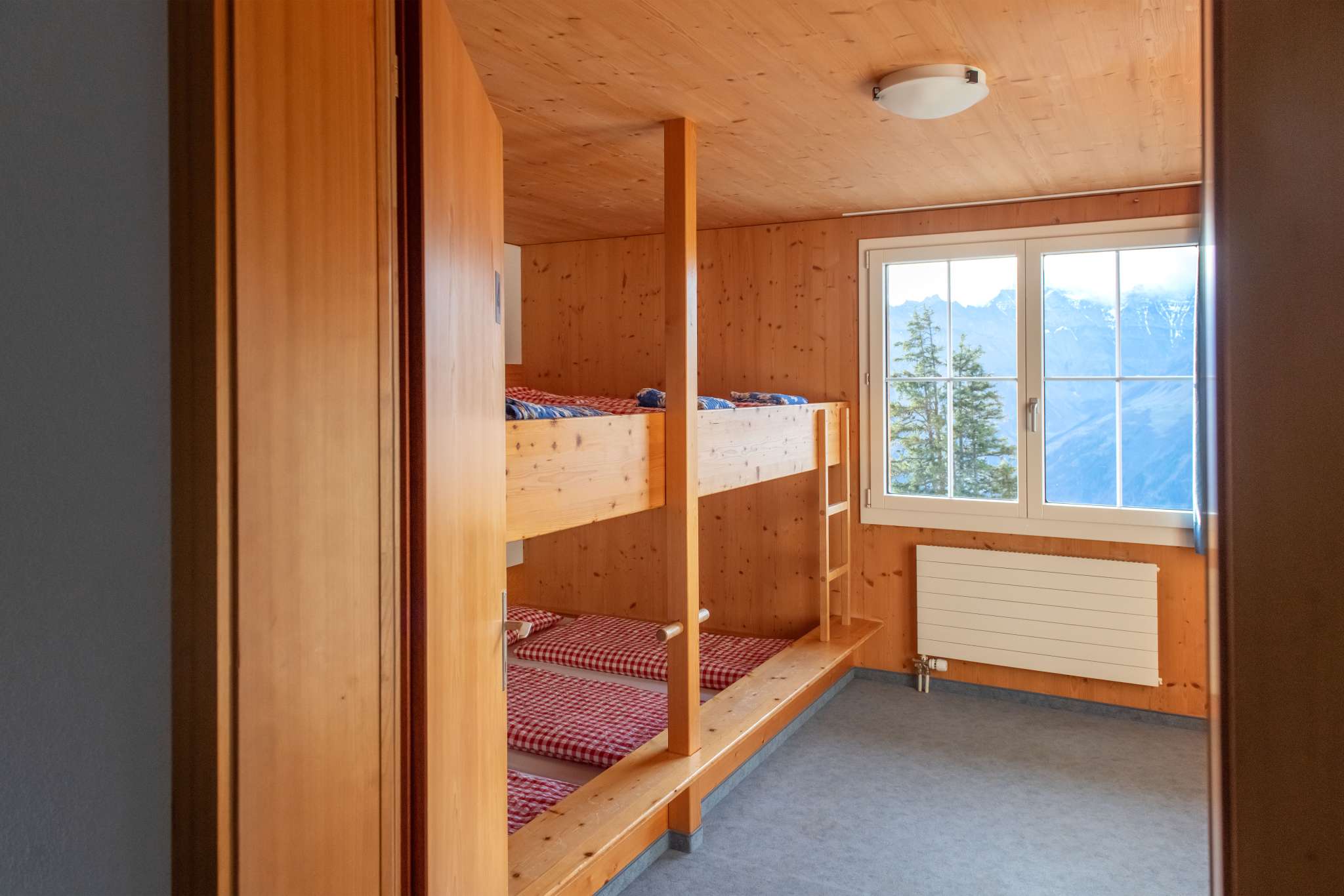 Unsere Zimmer sind einfach aber bequem eingerichtet – in typischer Alpen-Atmosphäre. Wir haben 1x3er-Zimmer, 1x4er-Zimmer und 5x8er-Zimmer.