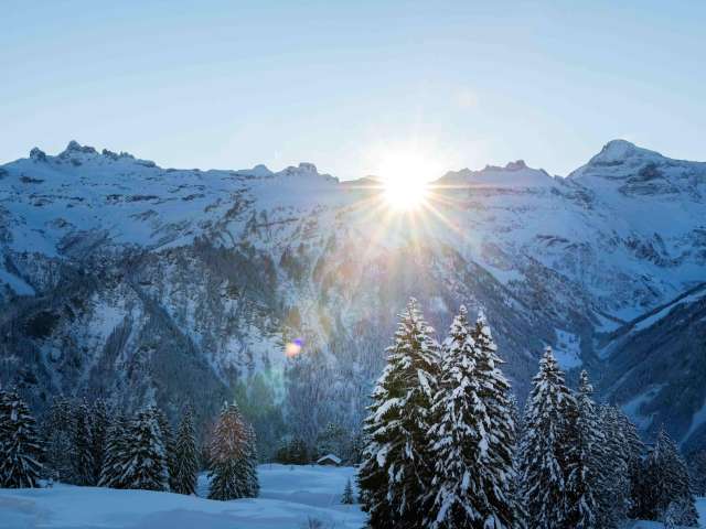 Auf der Piste stehen, wenn die Sonne gerade aufgeht, die ersten Spuren in die frisch präparierte Piste ziehen, den Sonnenaufgang beobachten und im Berggasthaus Gumen ein feines Frühstücksbuffet bis 10.00 Uhr geniessen. Genuss pur!